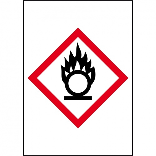 Aufkleber I Gefahrensymbol Flamme über Kreis GHS 03, Folie, selbstklebend, 70x100mm, 6/Bogen, GHS-Verordnung