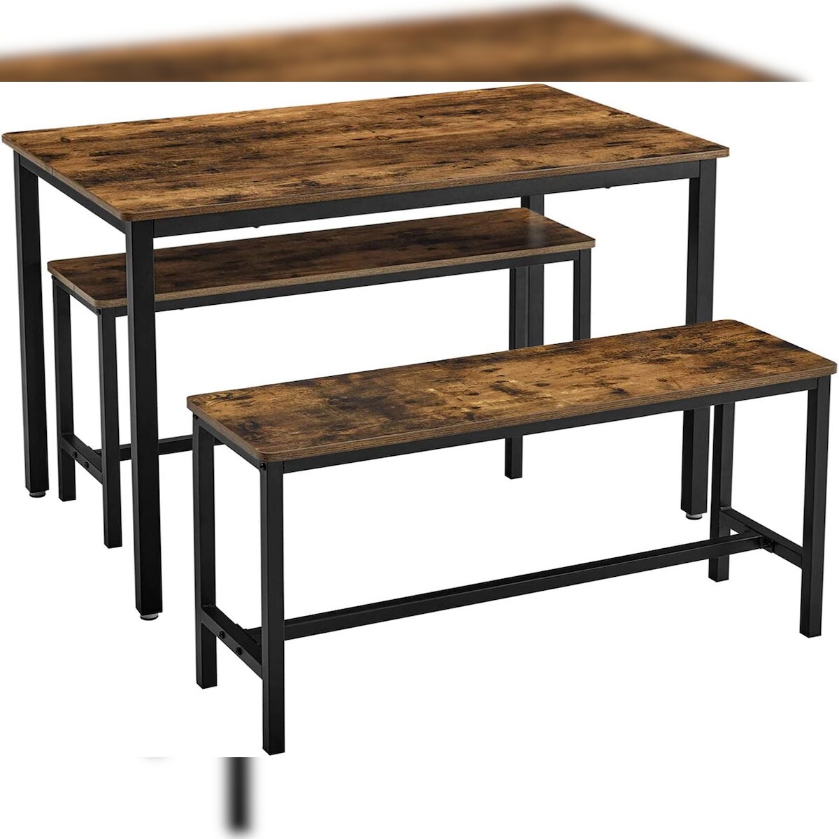 mabelo Küchentisch-Set 110 x 70 x 75 cm, Küchentisch mit 2 Bänke, Esszimmertisch Metallrahmen, Industrie-Design, vintagebraun-schwarz
