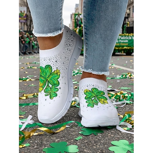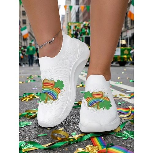cuore di San Patrizio per donna Sneakers Flyknit con stampa a trifoglio: scarpe da passeggio elastiche e traspiranti slip-on per sfilate irlandesi, feste, viaggi comfort quotidiano