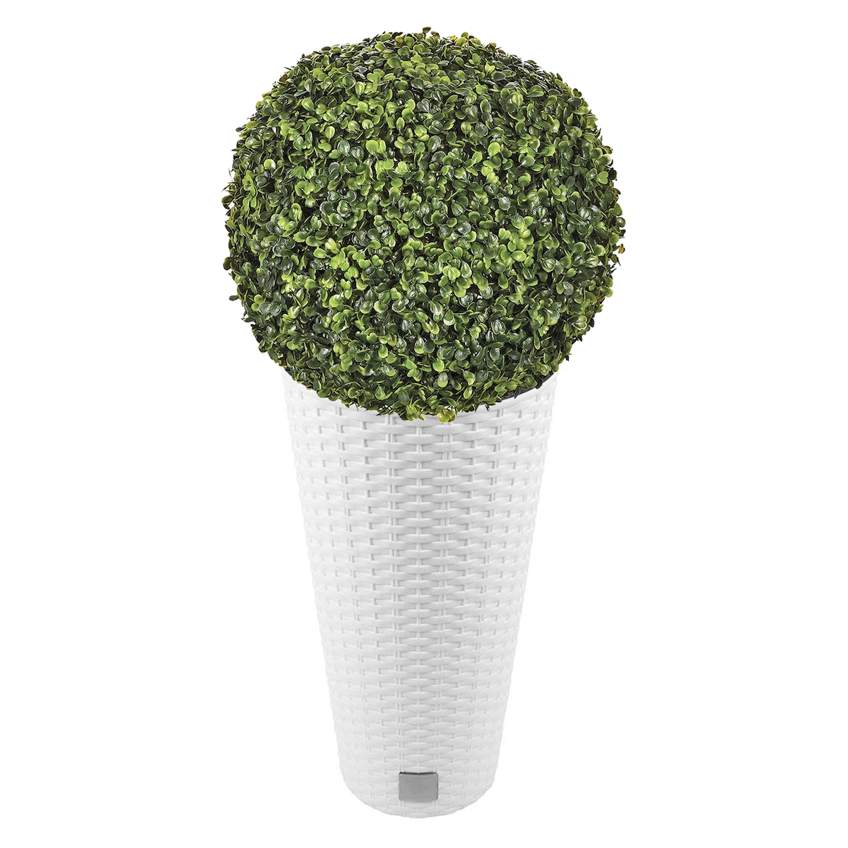 WellHome - Hoher Topf 27L Rato in Weiß mit Buchskugel 36 cm
