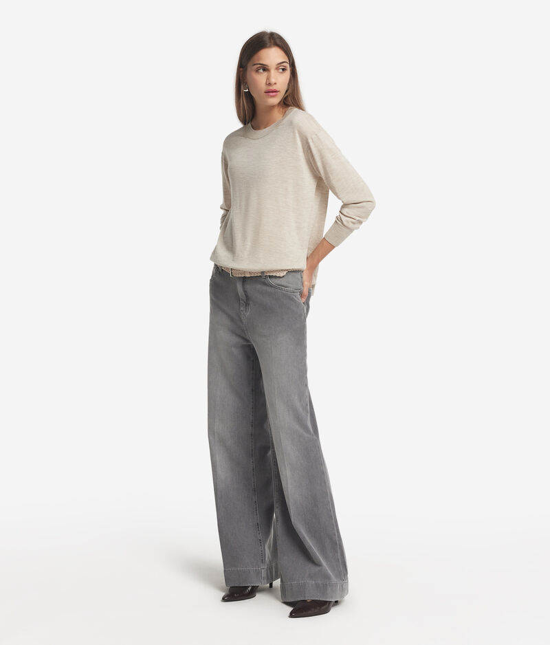 Falconeri Girocollo con spacchi in Cashmere Ultrafine Donna Stone Taglia LL