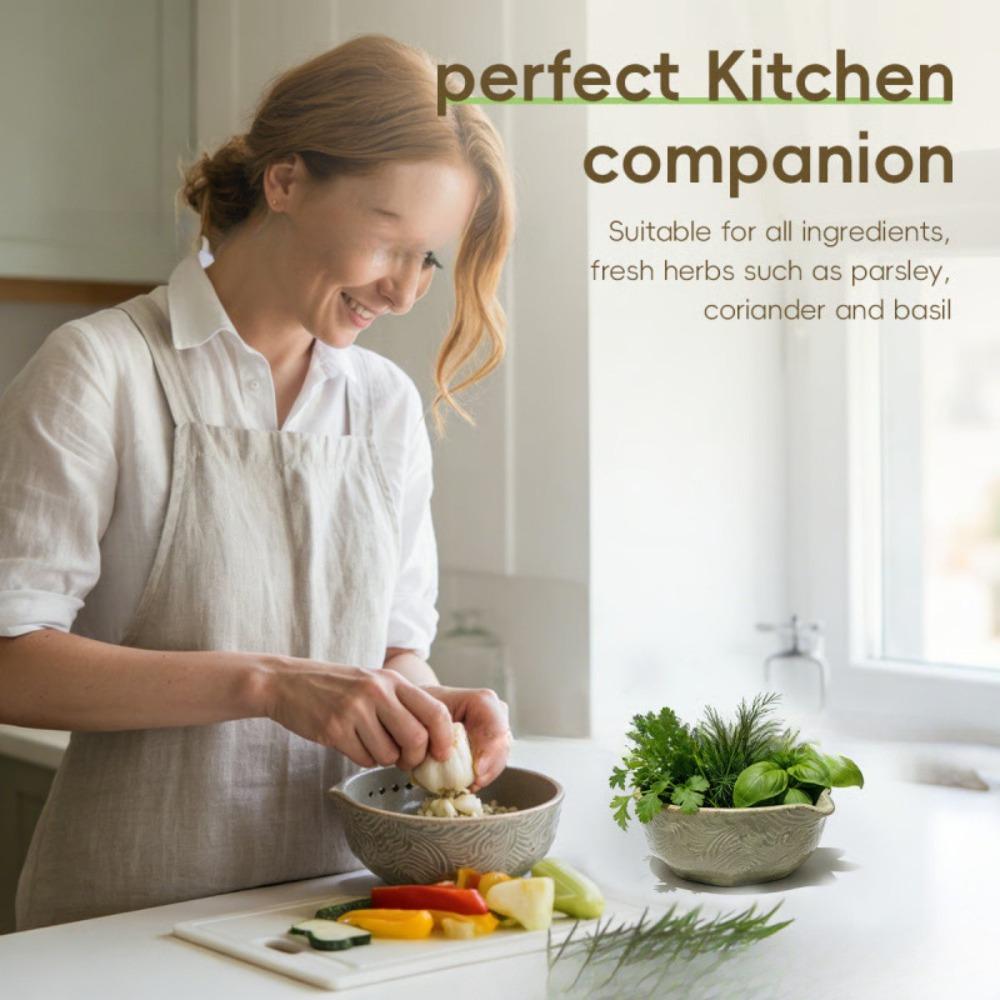 Bol râpe à ail manuel multifonctionnel 2-en-1 Moulin à ail multi-trous Râpe à gingembre en résine faite à la main Outil de cuisine