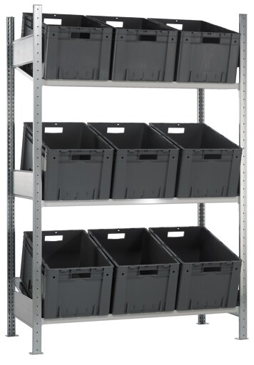 PROREGAL Schrägbodenregal MULTIplus150 | Grundregal ohne Behälter | HxBxT 200x100x60cm | 3 Fachböden | Traglast 150kg | Verzinkt/Lichtgrau