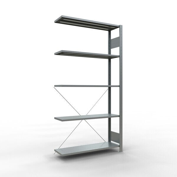 SCHULTE Lagertechnik Anbauregal, Fachbodenregal Stecksystem MULTIplus150, 2000 x 1000 x 300 mm (HxBxT), 5 Fachböden, Kreuzstrebe, verzinkt
