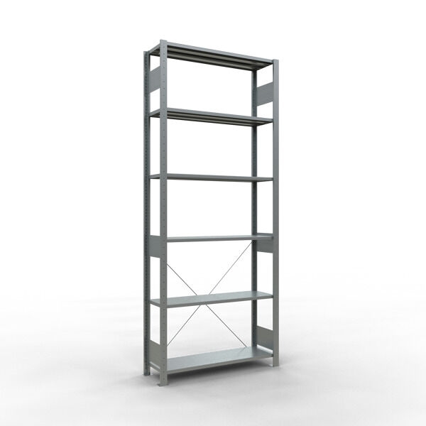 SCHULTE Lagertechnik Grundregal, Fachbodenregal Stecksystem MULTIplus150, 2500 x 1000 x 300 mm (HxBxT), 6 Fachböden, Kreuzstrebe, verzinkt