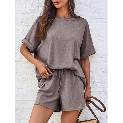 Per donna Set di Pantaloncini Bolero Top Manica Corta Girocollo Tinta unica Coulisse Moda Streetwear Casuale Quotidiano All'aperto Blu Nero Marrone Estate Vestibilità comoda