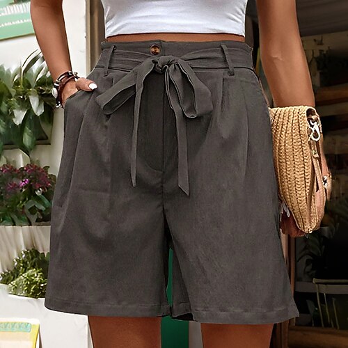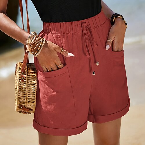 Per donna Pantaloncini in cotone e lino Pantaloni in cotone e lino Shorts Casual Quotidiano Corto Semplice Tasca Traspirabilità Confortevole Inelastico Uscire Weekend Nero Rosso Verde Cachi Estate