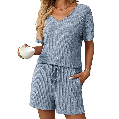 Per donna Set di Pantaloncini Bolero Top Manica Corta Scollo a V Semplice Coulisse Moda Streetwear Casuale Quotidiano All'aperto Nero Bianco Rosa Estate Vestibilità regolare