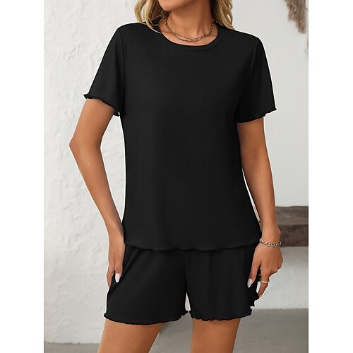 Per donna Set di Pantaloncini Bolero Top Manica Corta Girocollo Semplice Arricciato Patchwork Elegante Moda Streetwear Casuale Quotidiano All'aperto Nero Bianco Rosa Estate Vestibilità regolare