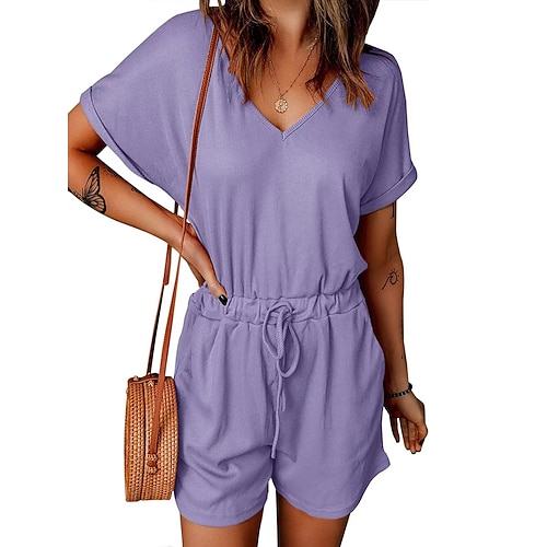 Per donna Normale Pagliaccetto Attivo Tinta unica Manica Corta Pantaloncini larghi Scollo a V Tasca Con Cintura Quotidiano Vacanza Vestibilità regolare Vino Blu marino Viola Estate