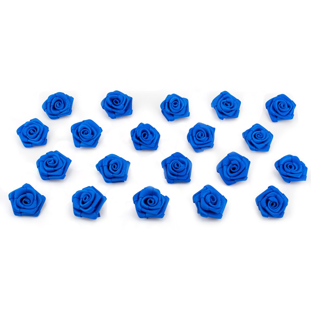 Creativery Satinrosen 2cm 20 Stück Stoffblumen zum Basteln Dekorieren Hochzeit Geschenkverpackung Blütendeko Tischdeko Handarbeit Stoffrosen Deko Blau