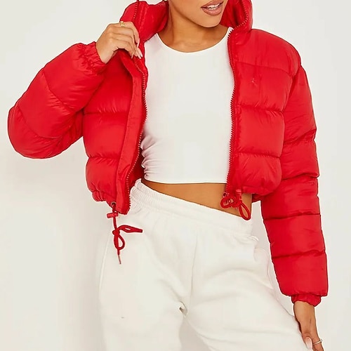 Per donna Cappotto Invernale Giacca Piumino Caldo Confortevole Cerniera Tasca Casual Semplice Abbigliamento quotidiano Uscire Weekend Corto Collo alla coreana Vestibilità regolare Manica Lunga