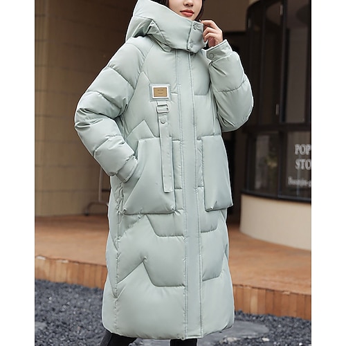 Per donna Cappotto Invernale Giacca Piumino Cappotto Caldo Confortevole Cerniera Tasca Bottoni Casual Semplice All'aperto Vacanza Uscire Weekend Lungo Con Cappuccio Vestibilità regolare Manica Lunga