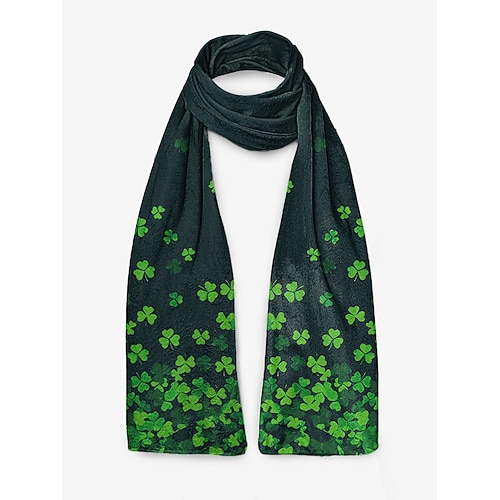 sciarpa da donna in poliestere effetto velluto per San Patrizio, con molteplici fantasie, perfetta per le celebrazioni di San Patrizio