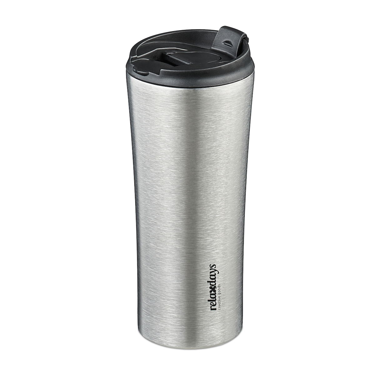 Relaxdays Thermobecher, 400 ml, für Heiß- & Kaltgetränke, dichter Kaffeebecher aus Edelstahl, BPA-frei, silber/schwarz