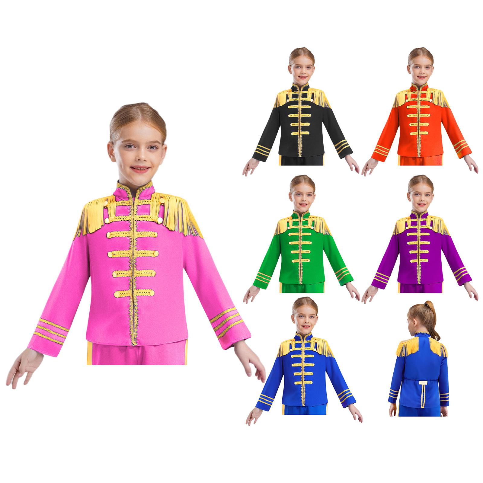 Barn 1960-talls Britisk Stjerne Kostyme Langermet Gull Blondefortrykk Rockeband Musiker Cosplay Skjorte Topp cm Svart