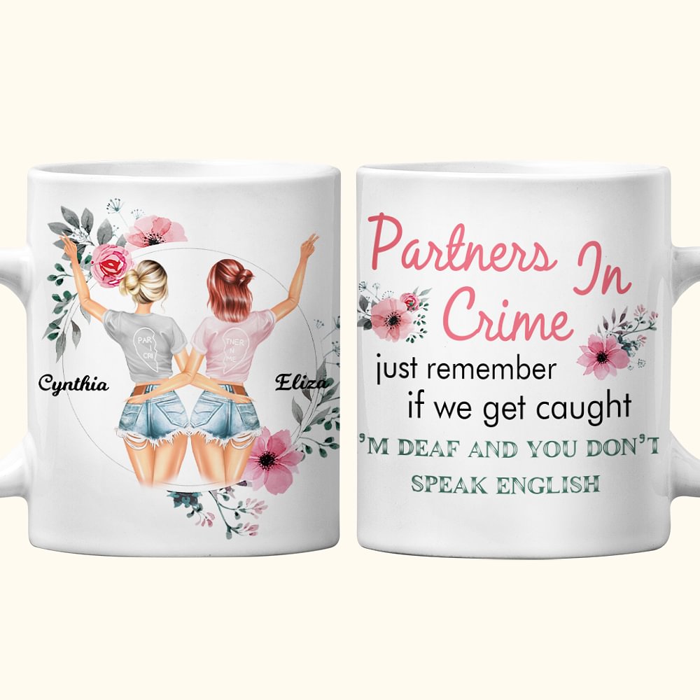 Gepersonaliseerde Partners in Crime If We Get Caught I'm Deaf You Don't Speak English White Ceramic Mok Verjaardag Kerstmis Afstudeercadeau voor Besti