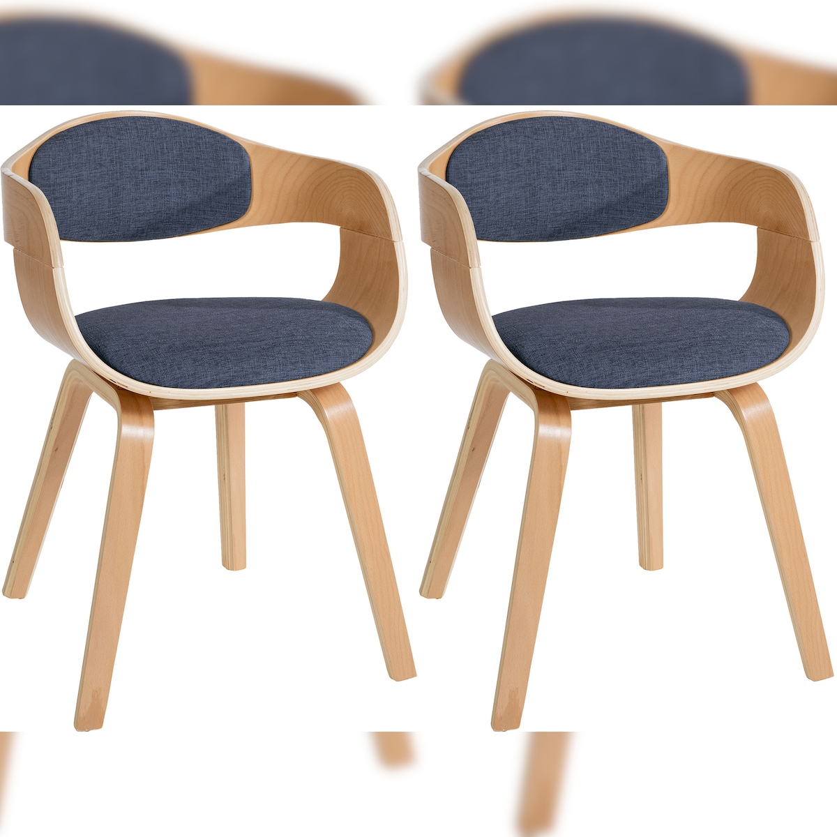 DELUKE® 2er Set Stühle LONDON Stoff - 73x49x46cm, Natur/Blau | Stoff | Holz Gestell | Konferenzstuhl Wartezimmerstuhl
