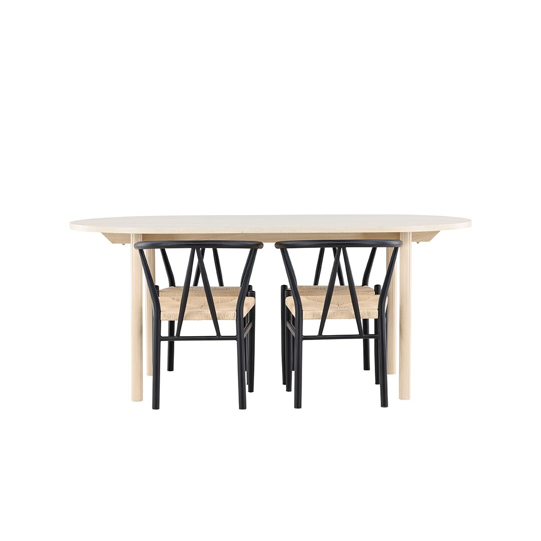 Ebuy24 Andy Essgruppe Tisch 90x180cm und 4 Stühle mit Armlehnen stapelbar whitewash.