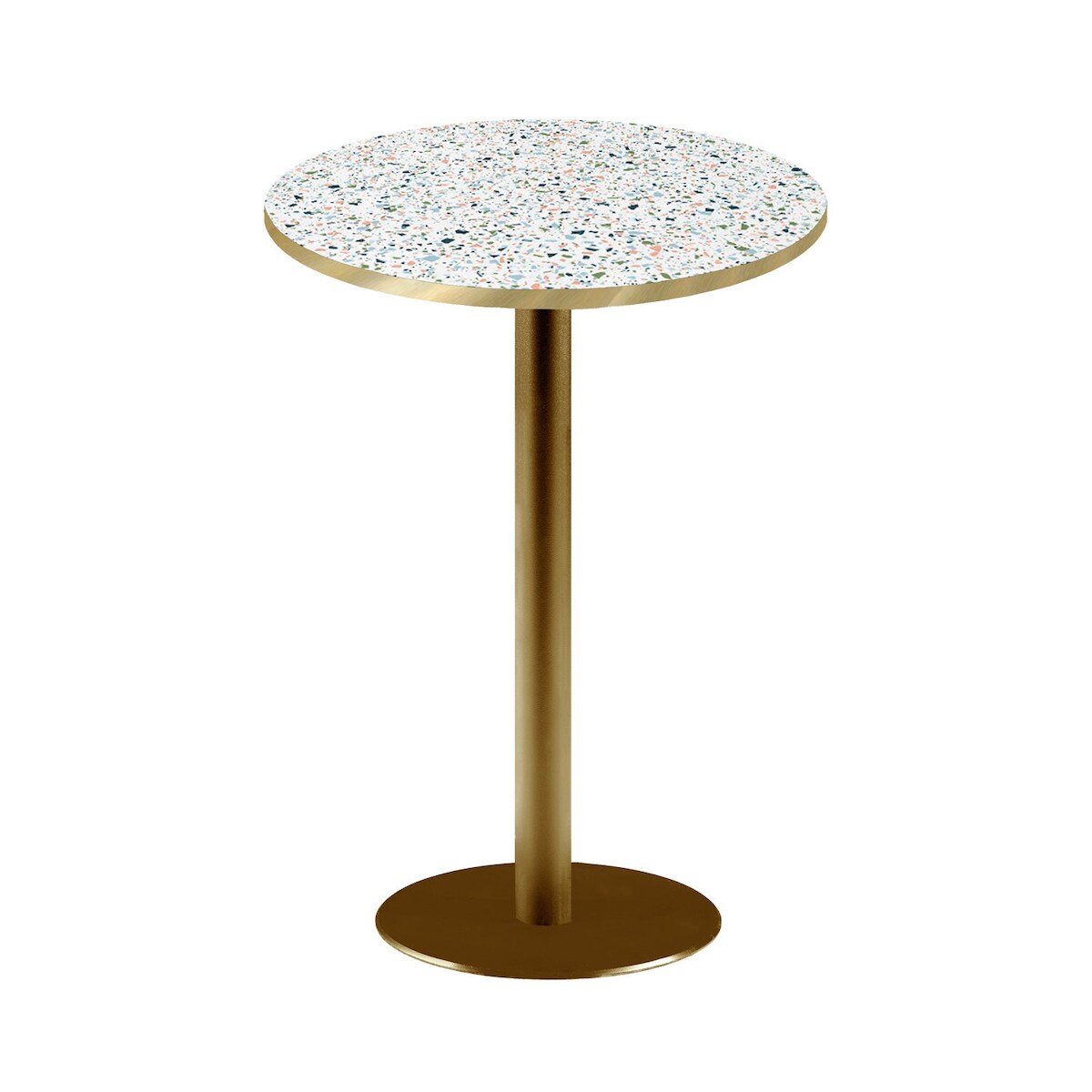 Restootab Stehtisch Round 60x60cm - Modell Terrazzo Cassata mit messingfarbenen Kanten