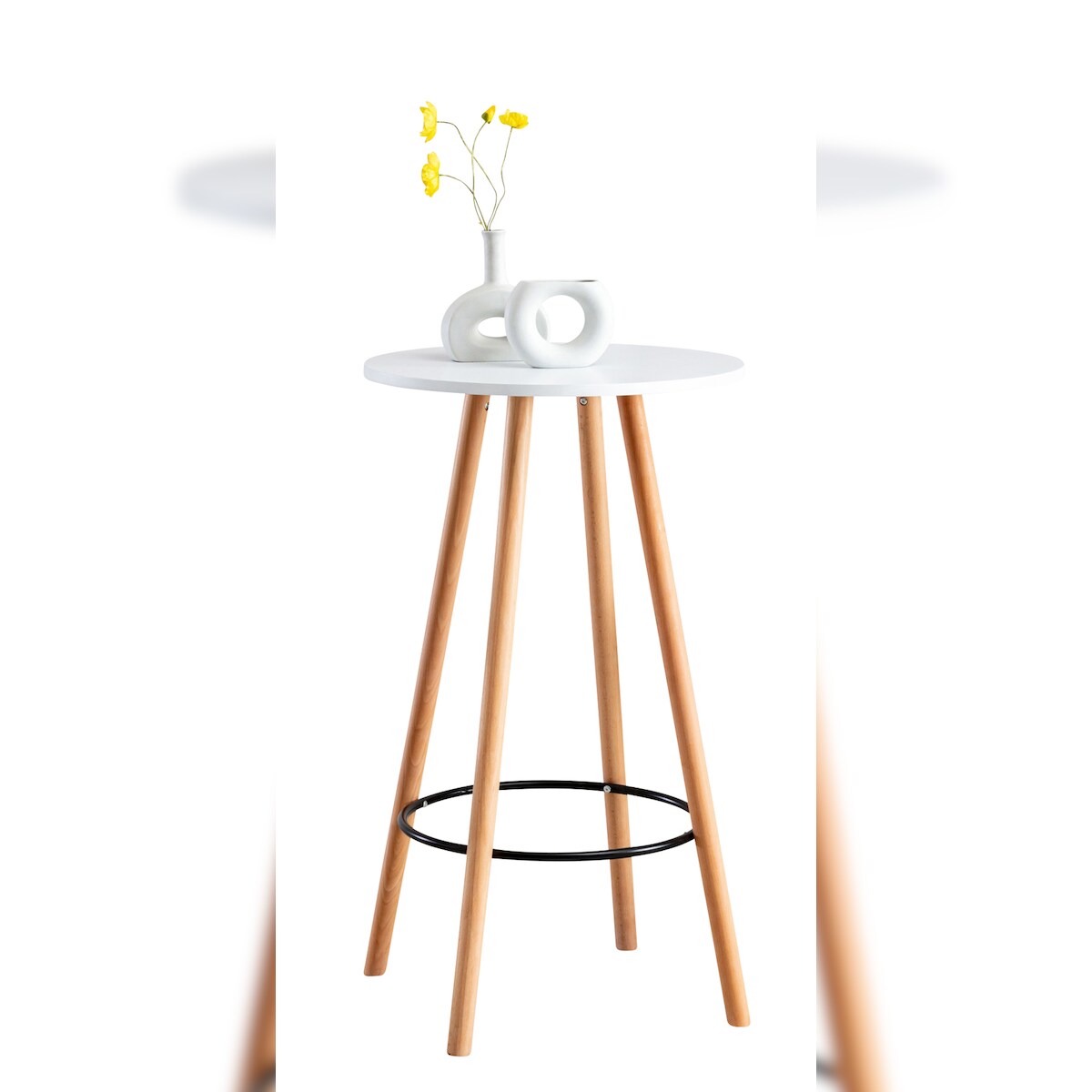 DELUKE® Stehtisch Ø 60cm innen REJA 107cm Hoch, Skandinavisches Design Bartisch rund Indoor Hoher Tisch Bistrotisch Hochtisch, Weiß