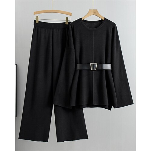 Per donna Felpa Insieme del maglione Streetwear Casual Tinta unica Girocollo Lavorato a maglia Orlo asimmetrico Manica Lunga Top Regolari Maglia Quotidiano Ferie Uscire Nero Cachi Autunno Inverno