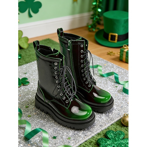 stivali da combattimento verdi da donna per il giorno di San Patrizio: pelle resistente con dettagli tradizionali irlandesi, stile allacciato, vestibilità comoda per sfilate e celebrazioni festive