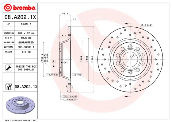 BREMBO Bremsensatz-Hinterachse XTRA LINE SK8K0F8LQ3 Bremsensatz, Scheibenbremse hinten rechts links Gelocht 282mm für SKODA VW SEAT (FAW) AUDI 1K06984