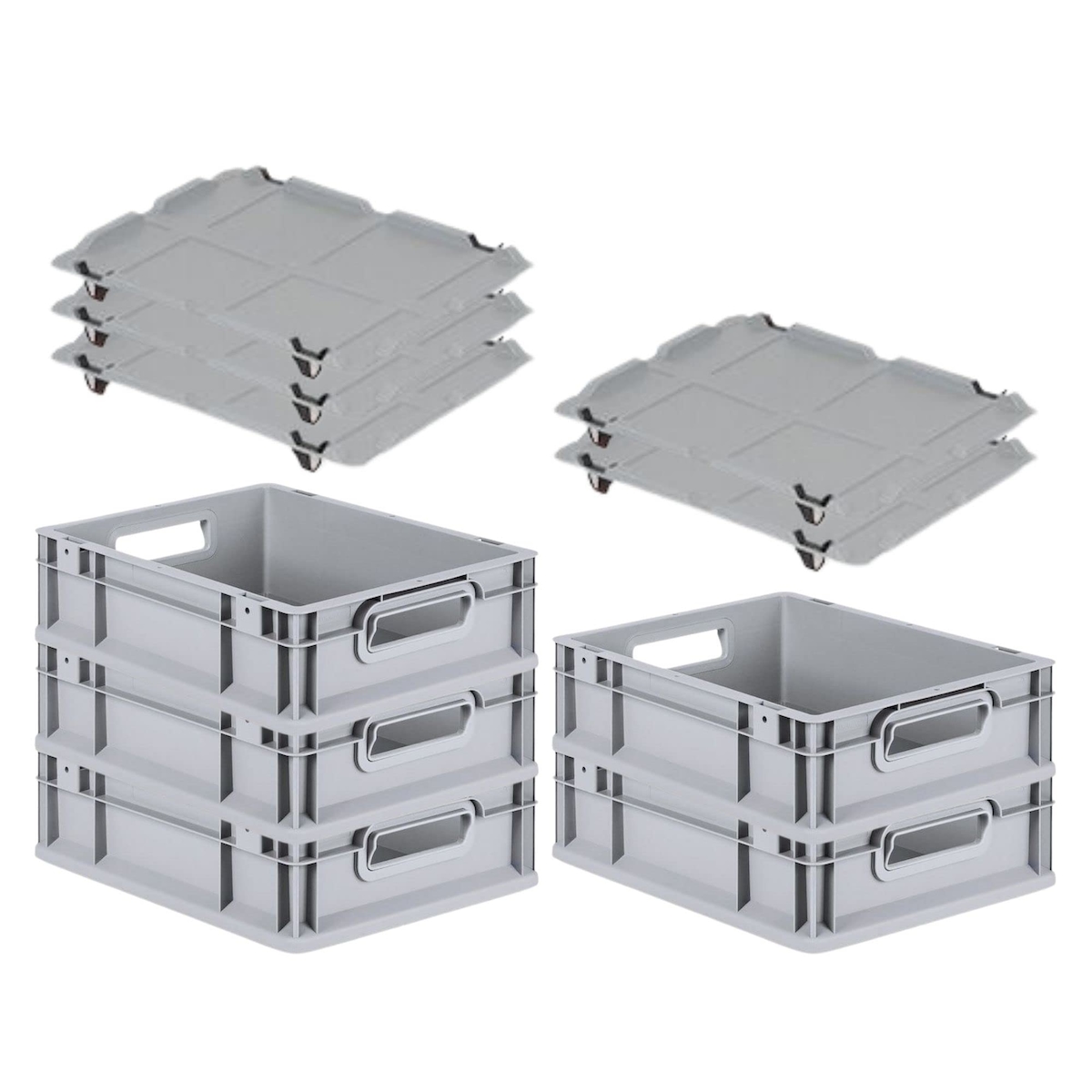 PROREGAL SparSet 5x Eurobox NextGen Grip mit Auflagedeckel & 4 schwarzen Verschlüssen, HxBxT 12x30x40cm, 11L, Grau, Griffe offen, Eurobehälter