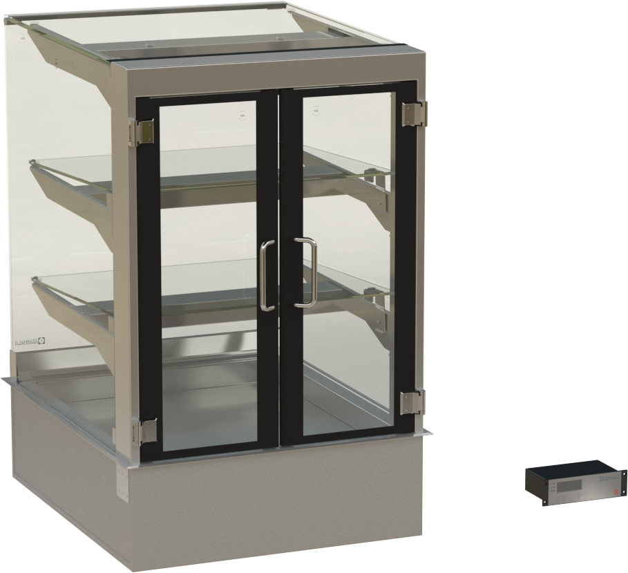 Showcase "Bergen" eckig, für 1,5xGN1/1, 3 Auslagen 20mm Tiefe, 597x710/200x710mm (BxHxT) steuerungsfertig