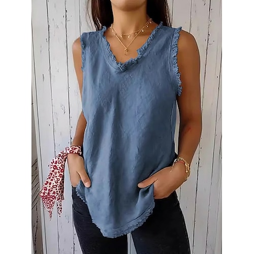Per donna Top estivi Blusa Top Eleganti Tinta unica Semplice Elegante Vintage Quotidiano Senza Maniche Collo a U Top Regolari Quotidiano Lavoro Ferie Arricciato Patchwork Nero Bianco Blu Reale Fucsia