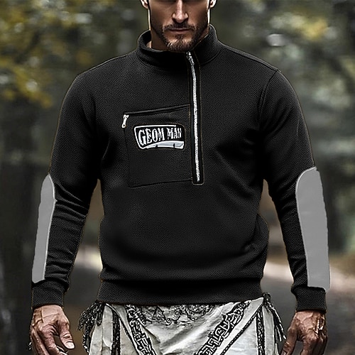 Per uomo Maglia Felpa in pile Felpa con zip corta Nero Rosa Cachi Grigio Mezza zip Blocco di colori Patchwork Sport Outdoor Quotidiano Ferie Poliestere Streetwear Essenziale Casual Inverno