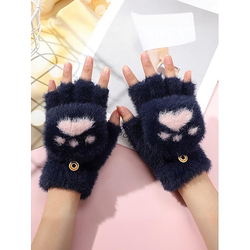 Guanti senza dita da donna in maglia con motivo a zampa di gatto: tessuto morbido e felpato, disponibili in vari colori, perfetti per l'inverno e per l'abbigliamento casual.