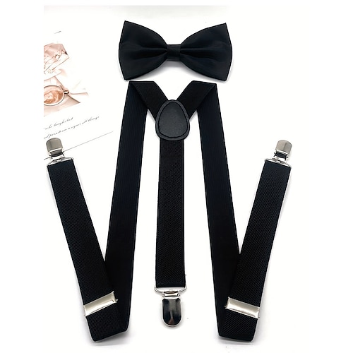 set di bretelle e papillon in poliestere da uomo, vari colori, perfetti per Natale e eventi formali