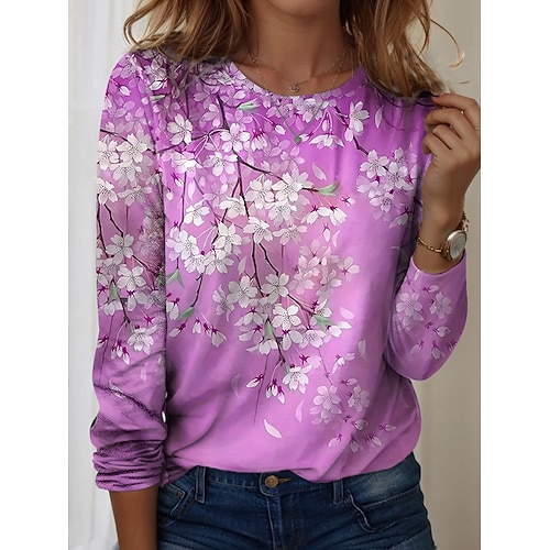 Maglietta da Donna Collo a Giro Manica Lunga Tunica Floreale Grafica Piante Vintage Elegante Classica Collo Rotondo Top Regolari Stampa Gialla Rossa Blu Viola Verde Autunno