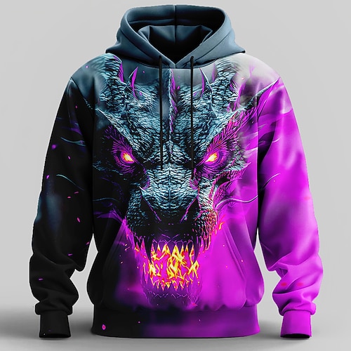 Per uomo Drago 3D Felpa con Cappuccio Felpa Cool Festa Manica Lunga Girocollo Club Abbigliamento casual alla moda Blu Viola Arancione Verde Coulisse Autunno Inverno progettista S M L XL XXL XXXL