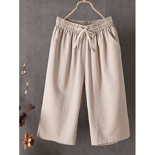 Per donna Gamba larga Chinos Vacanza Moda Streetwear Lunghezza al polpaccio Vita Alta Semplice Tasca Fascia Elastica Comodo Comodità Morbido Elasticizzato All'aperto Streetwear Aalbicocca Nero Rosso