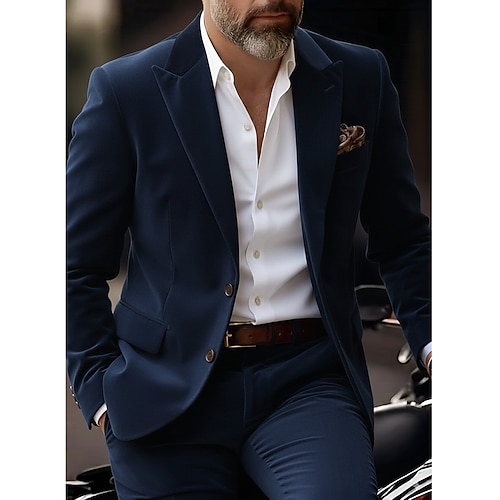 giacca blazer in velluto da uomo, colletto a lancia, classica giacca tinta unita, nero marrone blu scuro, vestibilità su misura, monopetto, due bottoni