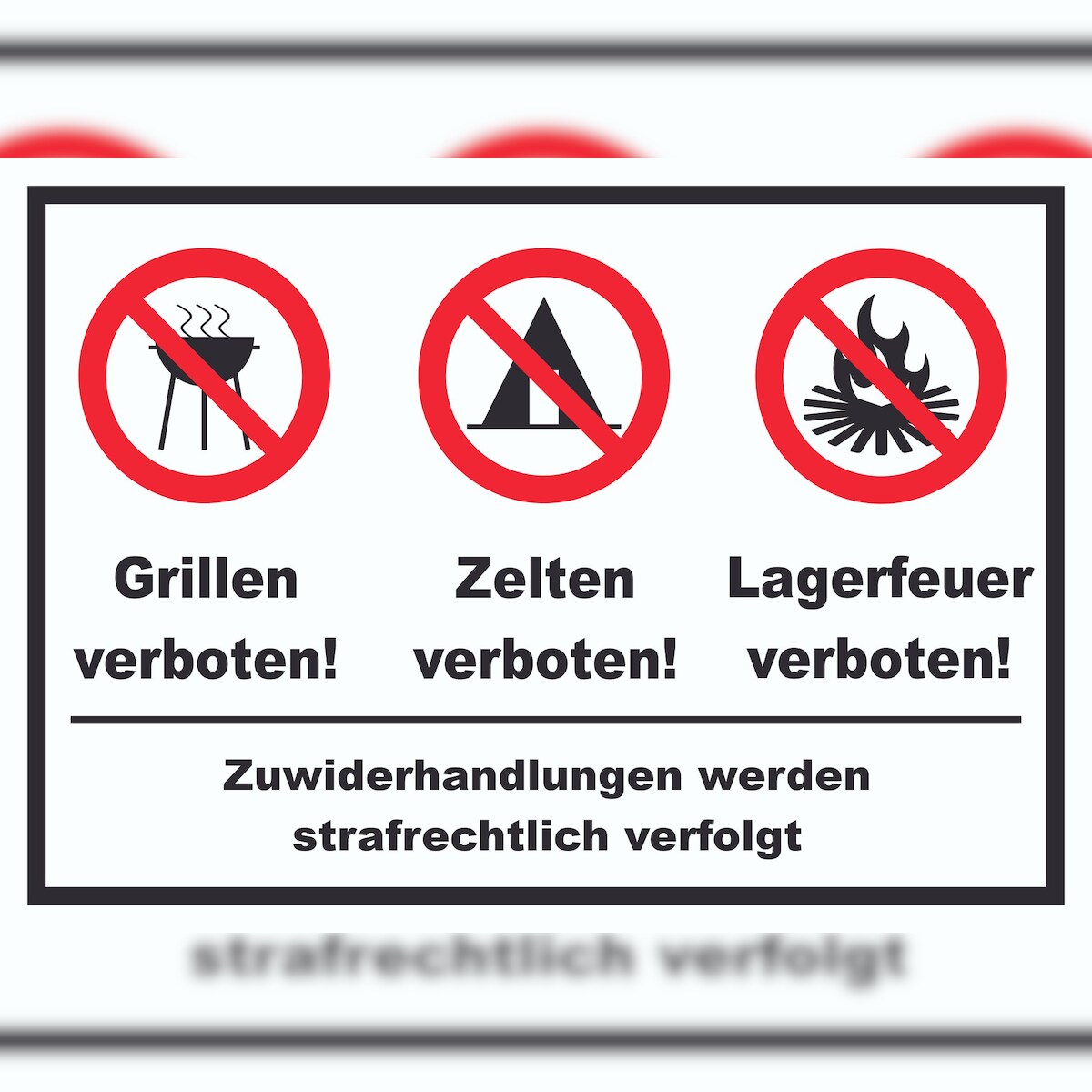 Grillen Zelten Lagerfeuer verboten Schild A4 (210x297mm)