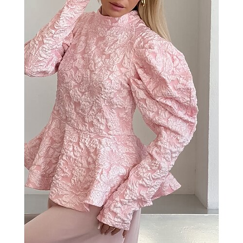 Per donna Blusa Tinta unica Elegante Essenziale Casual Manica Lunga Collo Alto Top Regolari Quotidiano Volant Bottoni Nero Bianco Rosa Primavera Autunno