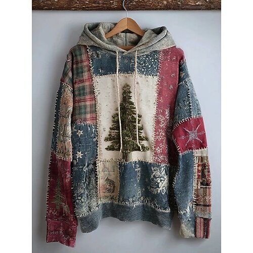 Per donna Felpa con cappuccio Floreale Grafico Albero di Natale Elegante Caldo Attivo Manica Lunga Con Cappuccio Top Regolari Streetwear Abbigliamento Quotidiano Casuale Patchwork Stampato Blu