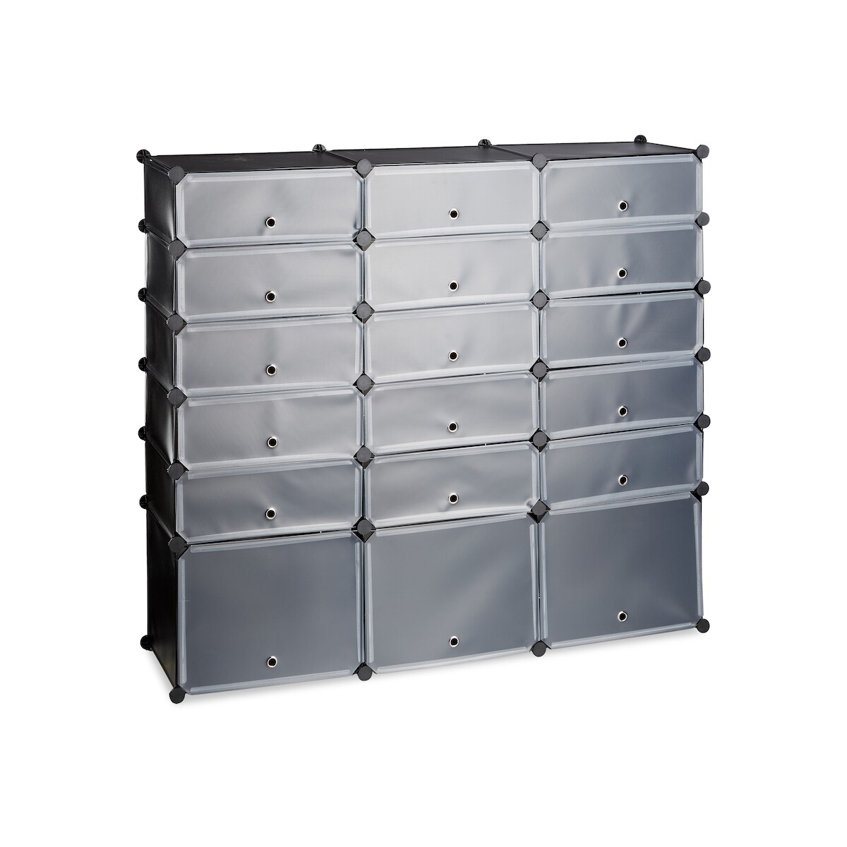 Relaxdays Schuhregal Kunststoff, 18 Fächer mit Türen, DIY Regalsystem, 36 Paar Schuhe, HxBxT: 125x140x36 cm, schwarz