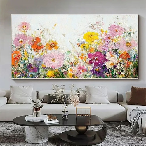 dipinto ad olio fatto a mano, bellissimi fiori primaverili selvatici, campo, dipinto ad olio, colorato, floreale, panoramico, design moderno, arredamento per la casa, dipinto su tela, arte murale,