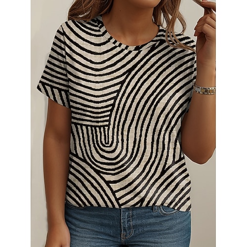 Per donna Taglia grossa Top Maglietta Grafico Astratto Stampato Manica Corta Girocollo Casual Quotidiano Poliestere Estate Primavera Bianco Blu