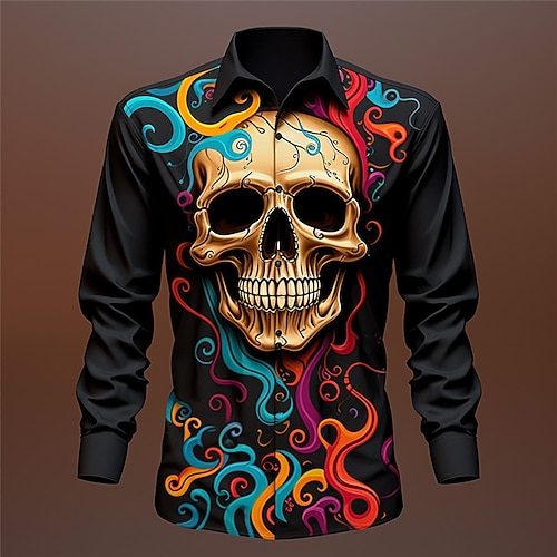 Camicia vintage gotica da uomo teschio outdoor street autunno e inverno colletto a camicia manica lunga nera gialla blu S M L camicia