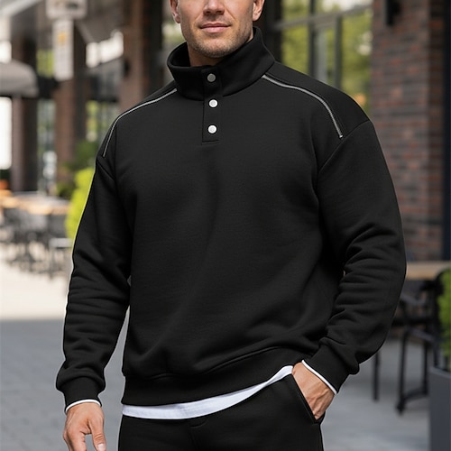 Per uomo Maglia Nero Marrone Cachi Colletto Mao Blocco di colori Patchwork Sport Outdoor Quotidiano Ferie Streetwear Essenziale Casual Primavera Autunno Abbigliamento Felpe con cappuccio Felpe