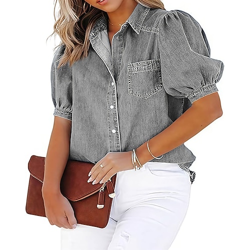 Per donna Camicia Blusa Semplice Elegante Vintage Manica Corta Colletto a Camicia Top Regolari Quotidiano Ferie Uscire Bottoni Nero Rosso Cammello Verde Grigio Estate Primavera Autunno