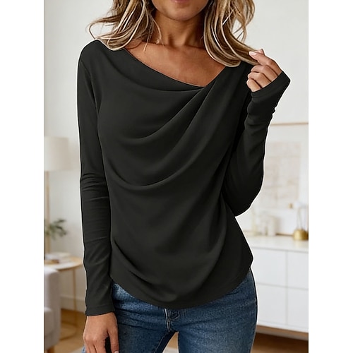 Per donna Tunica Maglietta Tinta unica Elegante Essenziale Classico Manica Lunga Scollo a Cascata Collo asimmetrico Top Regolari Quotidiano Blu Nero Bianco Viola Cachi Primavera Autunno Inverno