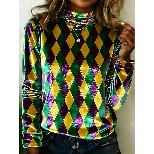 Carnevale Martedì grasso Per donna Tunica Maglietta Ombre Grafico Geometrico Elegante Vintage Moda Manica Lunga Dolcevita Collo Alto Top Regolari Quotidiano Uscire Weekend Stampato Viola Verde