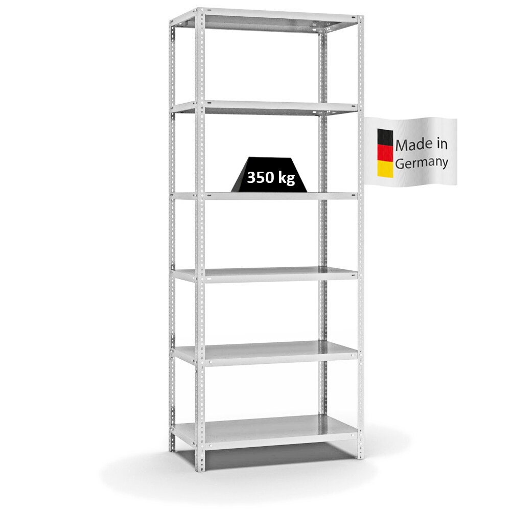 PROREGAL Fachbodenregal Schraubsystem | Grundregal | HxBxT 250x100x50cm | 6 Ebenen | Fachlast 350 kg | Beidseitig nutzbar | Lichtgrau